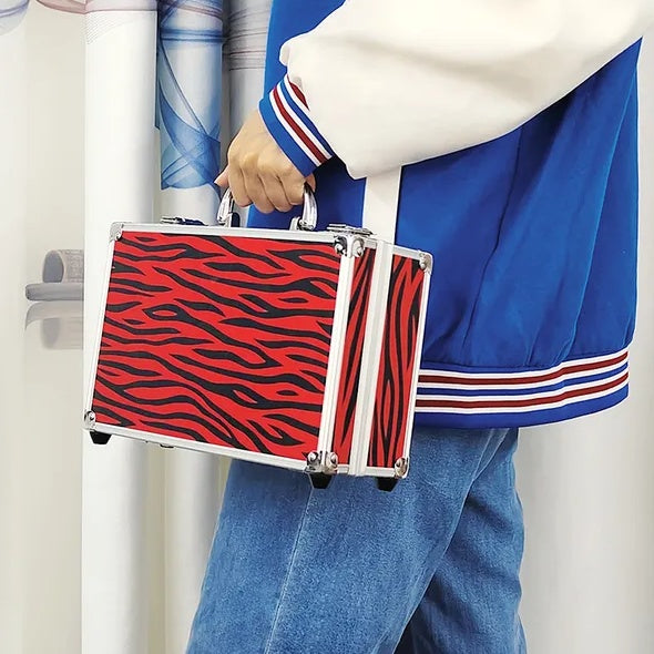 [Stylish and Durable Organizer]The chic pink leopard-print makeup train case is not only visually appealing but also sturdy. With reinforced aluminum frames, it offers durability and protection. It's also compact and portable, measuring 9.84 x 6.7 x 3.54 inches.
