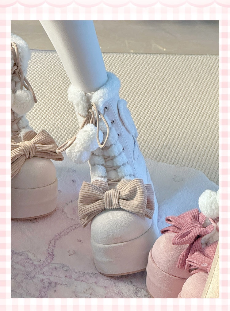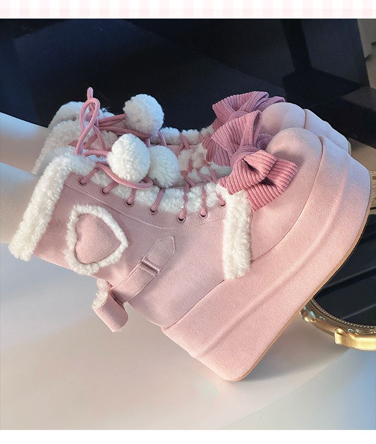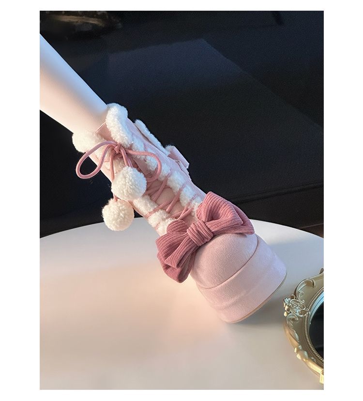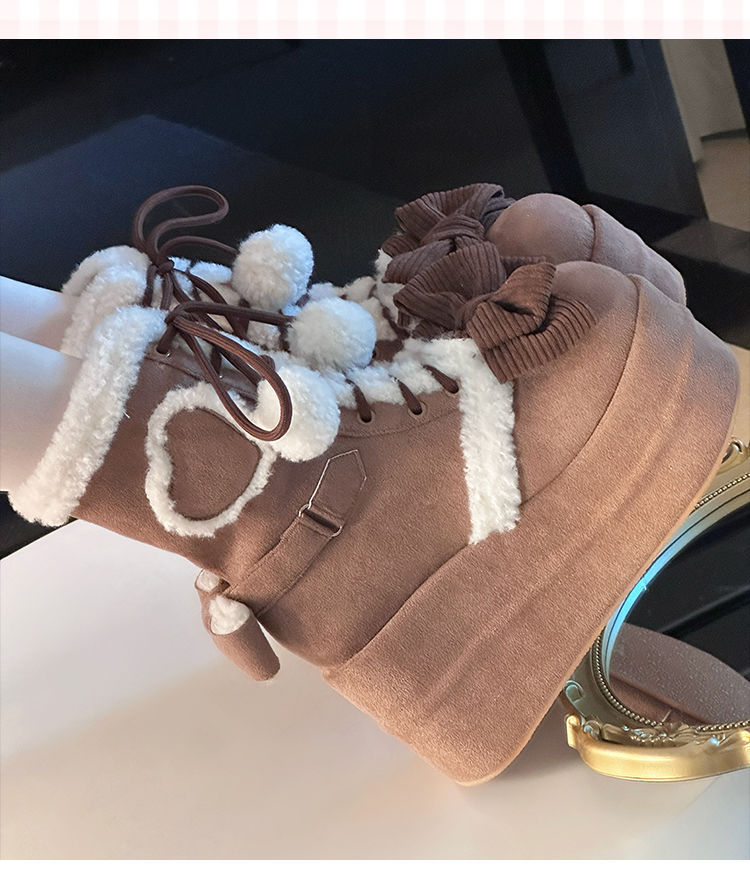 Autumn And Winter New Thick Bottom Sweet Soft Girl Cute Fur Ball Boots