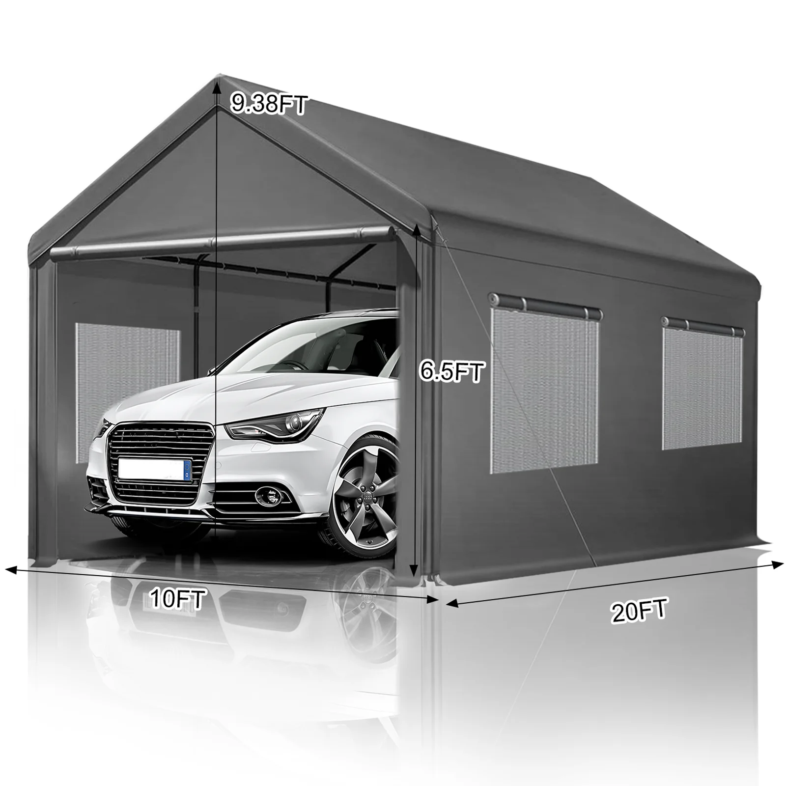 10*20FT heavy-duty canopy provides ample space for your vehicles, trucks and boats, after the side doors are removed, it can be used for outdoor picnics, parties, trade shows and other events. Carports come in various designs and materials, allowing you to choose one that complements your home's architecture and enhances its overall appearance.