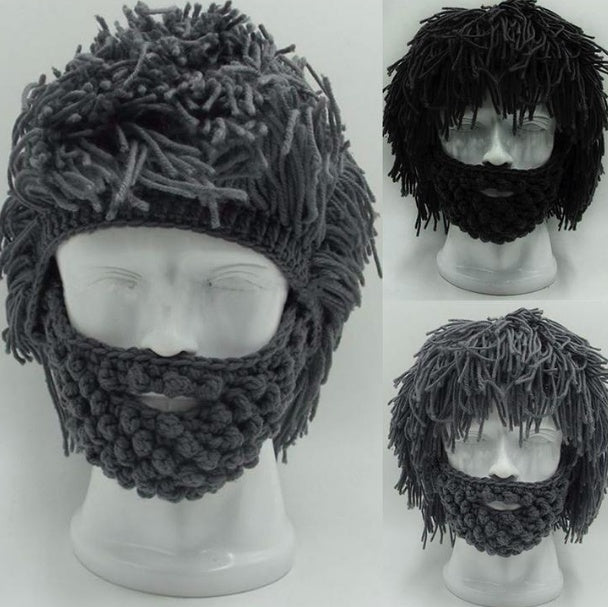 Halloween party spoof knit wool hats handmade beard men and women wig hats