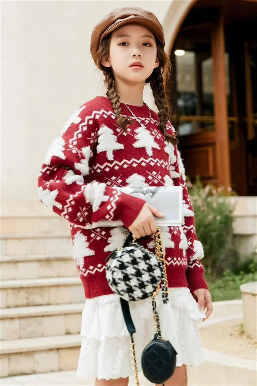 Christmas Sweater with Neck Boys Girls Children Clothes Winter New Sweaters Top Knitwear Clothes for 3 4 5 7 12 14Years