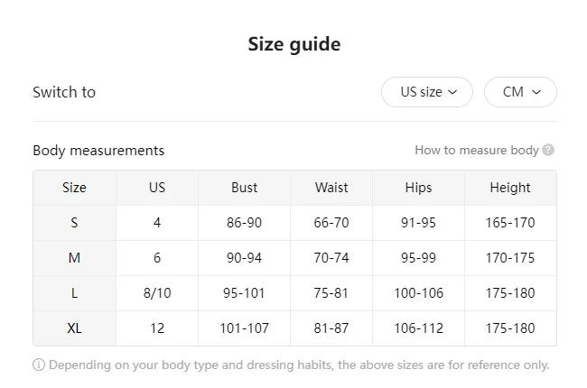size_info: {"sizeInfoList":[{"length":{"cm":"100","inch":"39.37"},"size":"S","vid":-1},{"length":{"cm":"106","inch":"41.73"},"size":"M","vid":-2},{"length":{"cm":"112","inch":"44.09"},"size":"L","vid":-3},{"length":{"cm":"118","inch":"46.46"},"size":"XL","vid":-4}]}