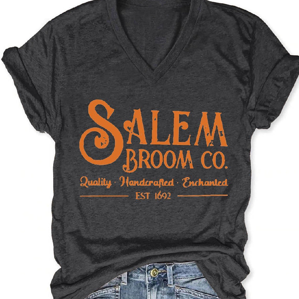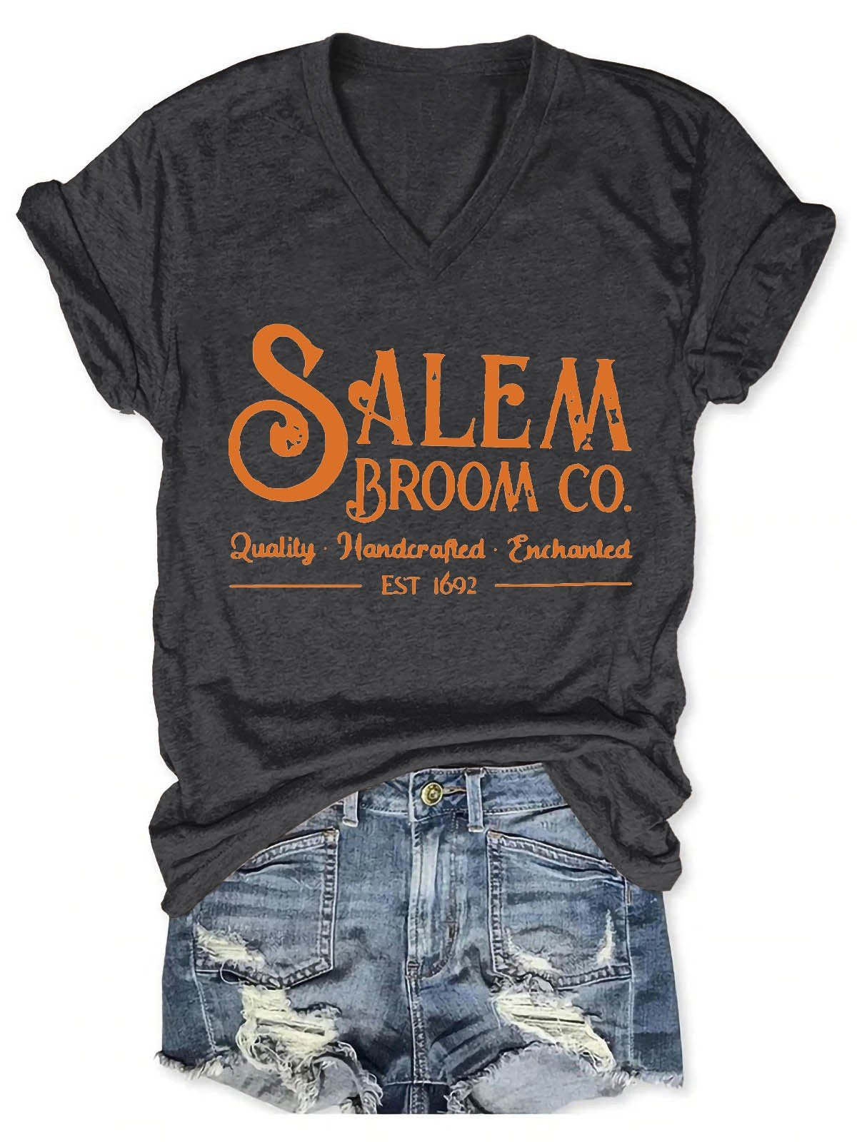 Women's Halloween Salem Broom Company V-neck T-shirt